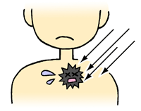 放射線療法は、高エネルギーX線などの放射線を病巣に照射して癌病巣を小さくしたり、死滅させたりする治療法です。